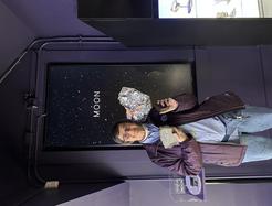 This is Nancy holding rocks from the moon and Mars at the Gem and Mineral Museum in Bethel, ME.